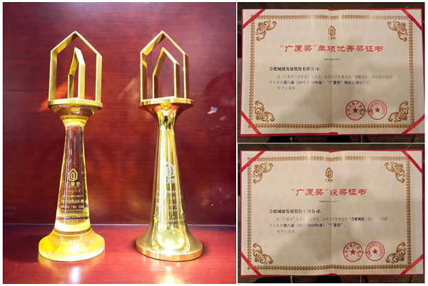 近日,由中国房地产业协会、住房和城乡建设部住宅产业化促进中心共同举办的第八届(2017-2018年度)“广厦奖”颁奖典礼在北京隆重召开。经过广厦奖评委严格的评审,最终合肥城建·琥珀瑞安家园项目脱颖而出,斩获“广厦奖”及“广厦奖”物业管理优秀奖两项殊荣,这是继2008年合肥城建·世纪阳光花园项目荣获广厦奖之后,合肥城建再度获此殊荣。